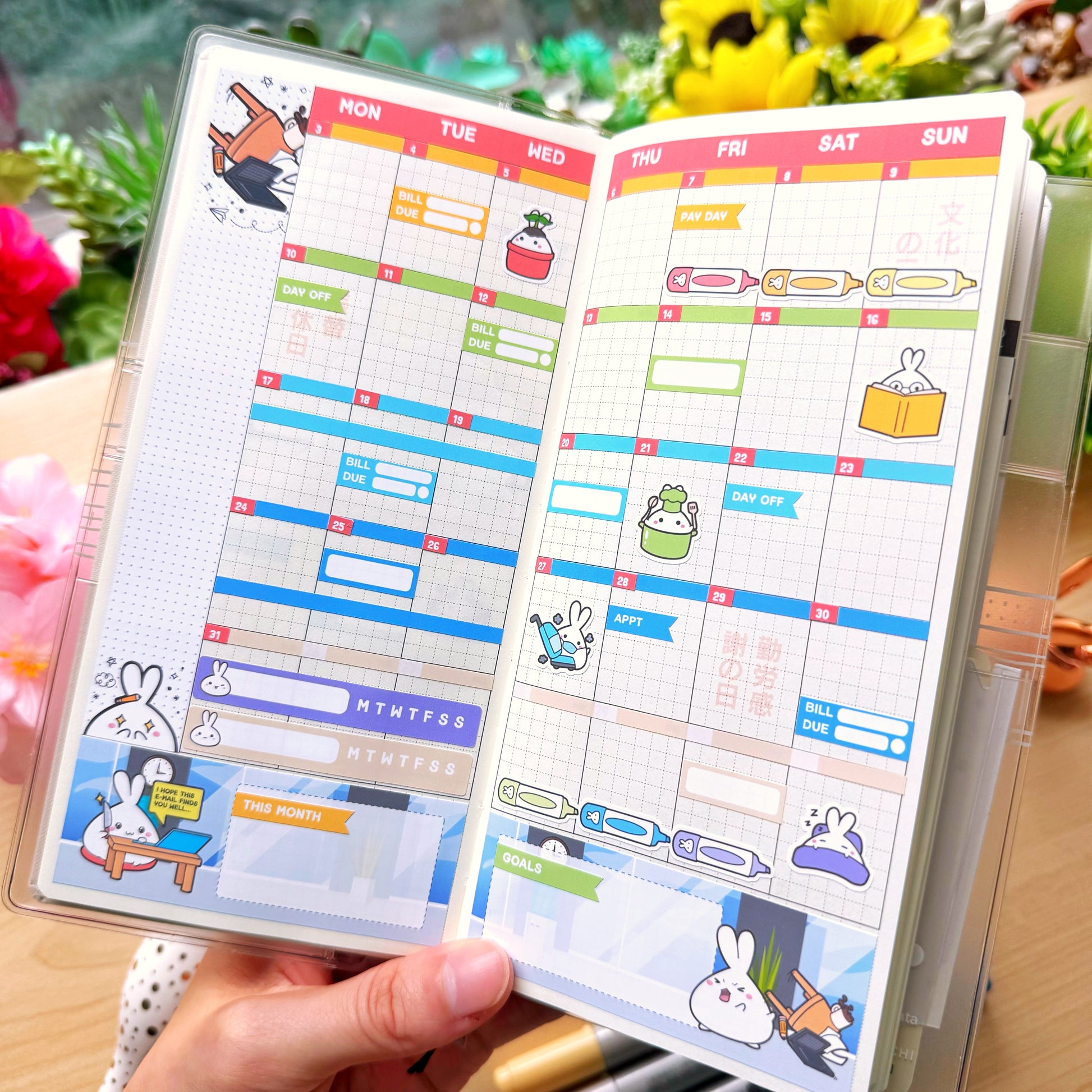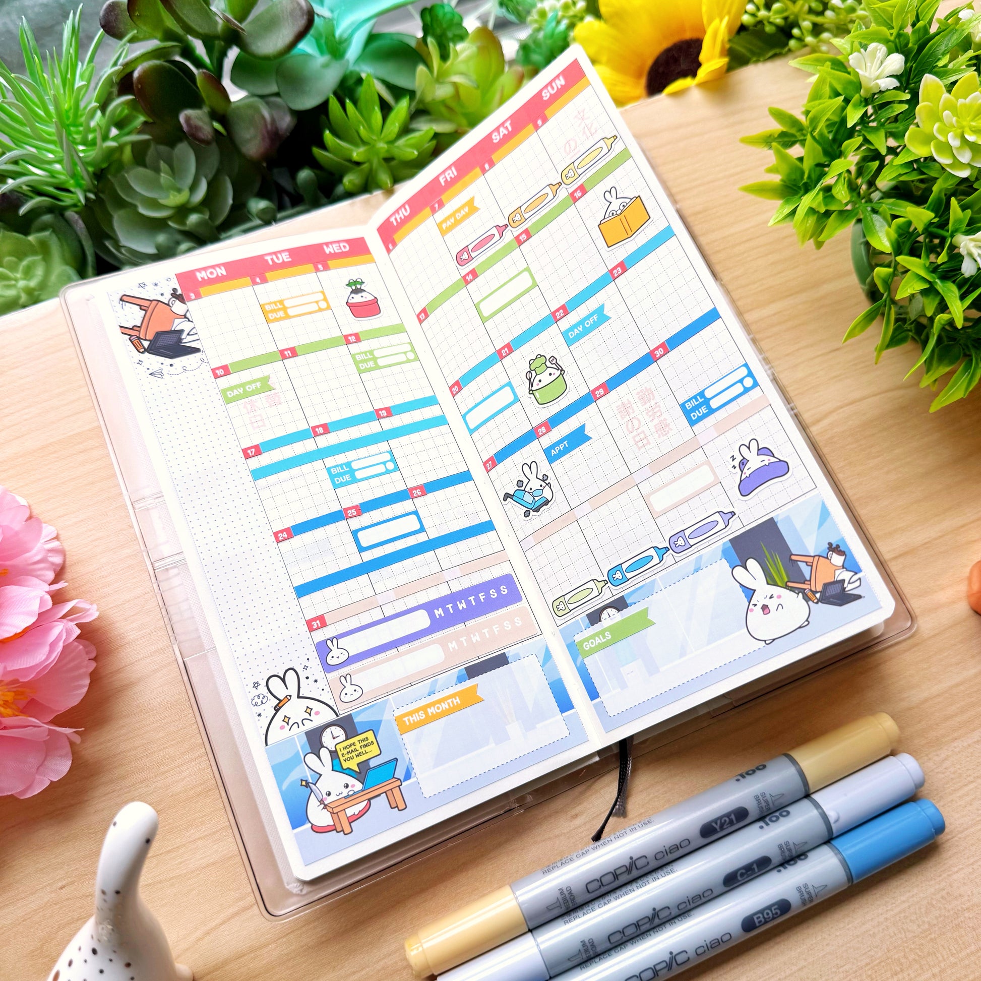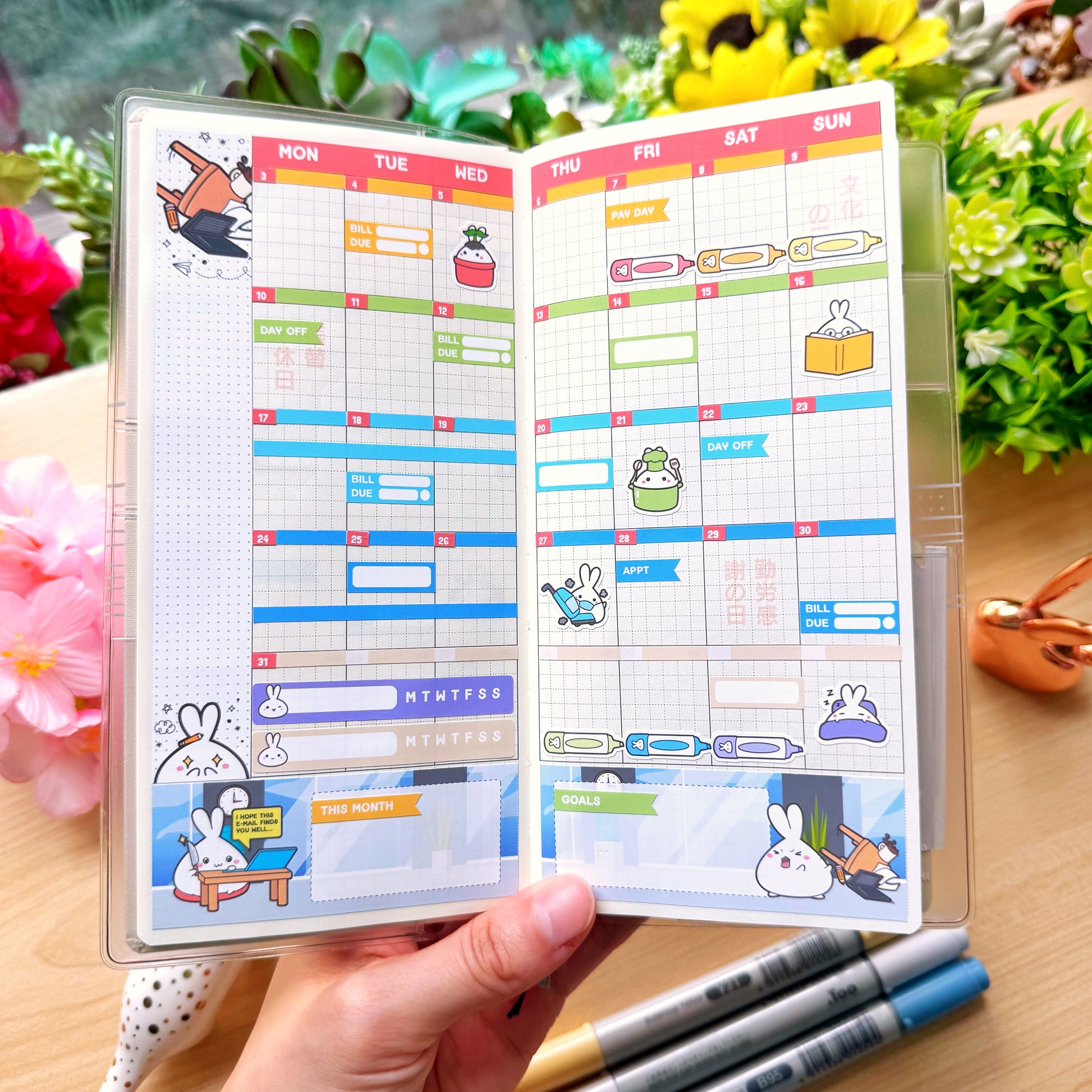 Designed for the Hobonichi Weeks planner. It adds a touch of elegance with the subtle gold foiling accents, and is perfectly sized to fit the planner, providing more than enough stickers to plan all activities for the week.